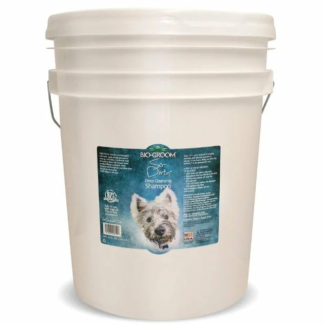 Bio-Groom So Dirty Shampoo is a powerful 5 gallon solution specifically designed to tackle the most extreme pet dirt and odors. Recommended by top breeders and professional groomers worldwide, this deep cleaning shampoo achieves superior performance for the messiest of dogs.