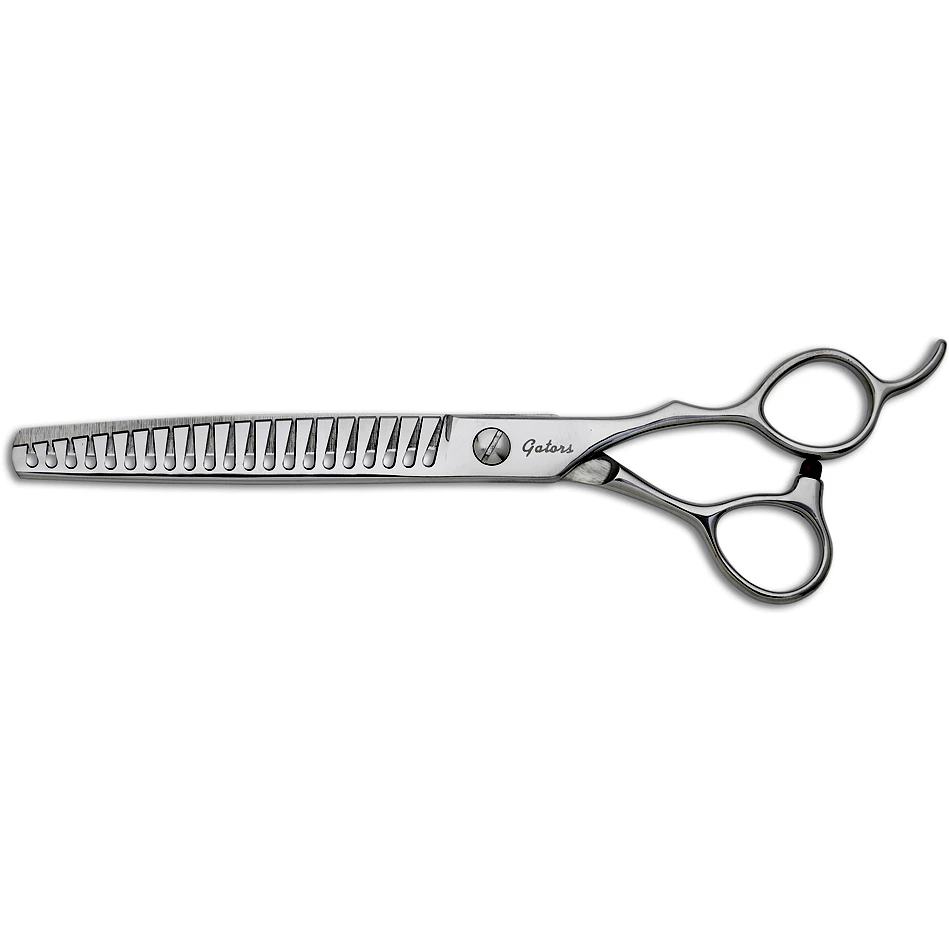 Gator shears are handcrafted in the US from high-quality Japanese 440c stainless steel. They provide effortless cutting and finishing. Great for all coat types. Ice-tempered for exceptional sharpness and durability. Ergonomic non-offset handles and fixed finger rest help prevent hand and wrist fatigue.